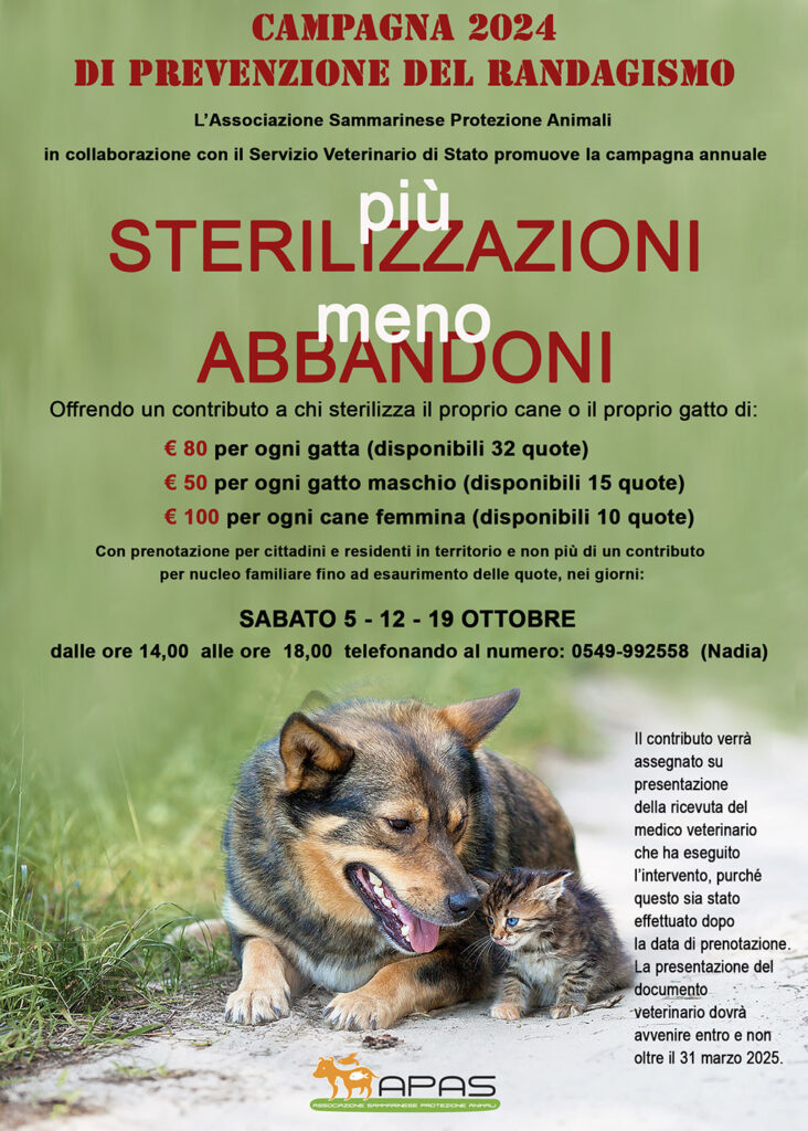L’Associazione Sammarinese Protezione Animali in collaborazione con il Servizio Veterinario di Stato promuove la Campagna annuale: