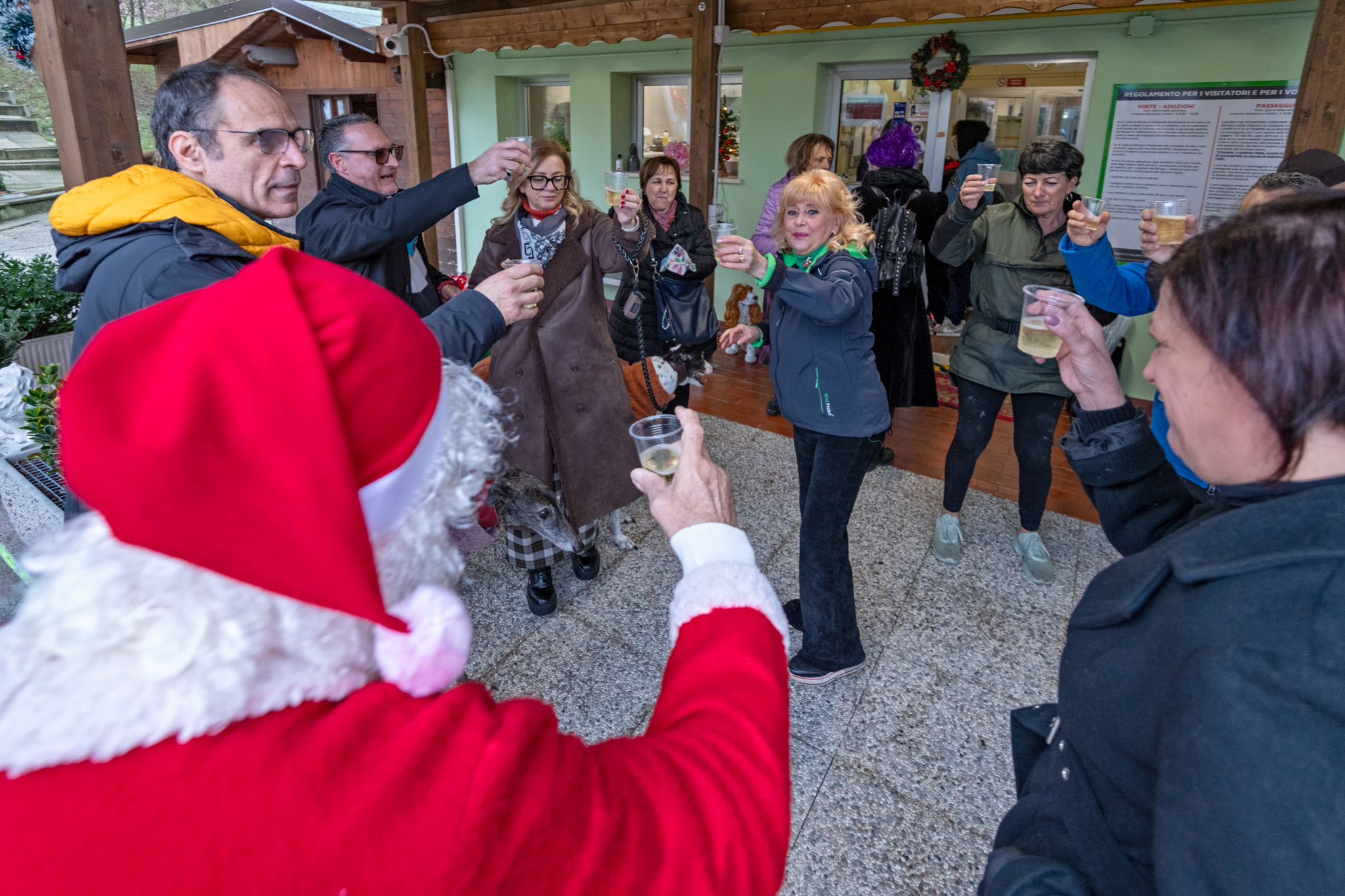 Dopo un caloroso momento di accoglienza dei partecipanti, reso ancora più speciale dalla gradita e sorprendente presenza di Babbo Natale, i relatori hanno illustrato le ragioni dell’incontro, soffermandosi in particolare sui doveri etici e morali che l’uomo ha nei confronti degli animali. È seguita una visita guidata al Rifugio, occasione preziosa per conoscere da vicino gli ospiti a quattro zampe accolti nella struttura e il lavoro quotidiano svolto dai volontari.