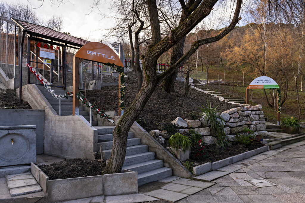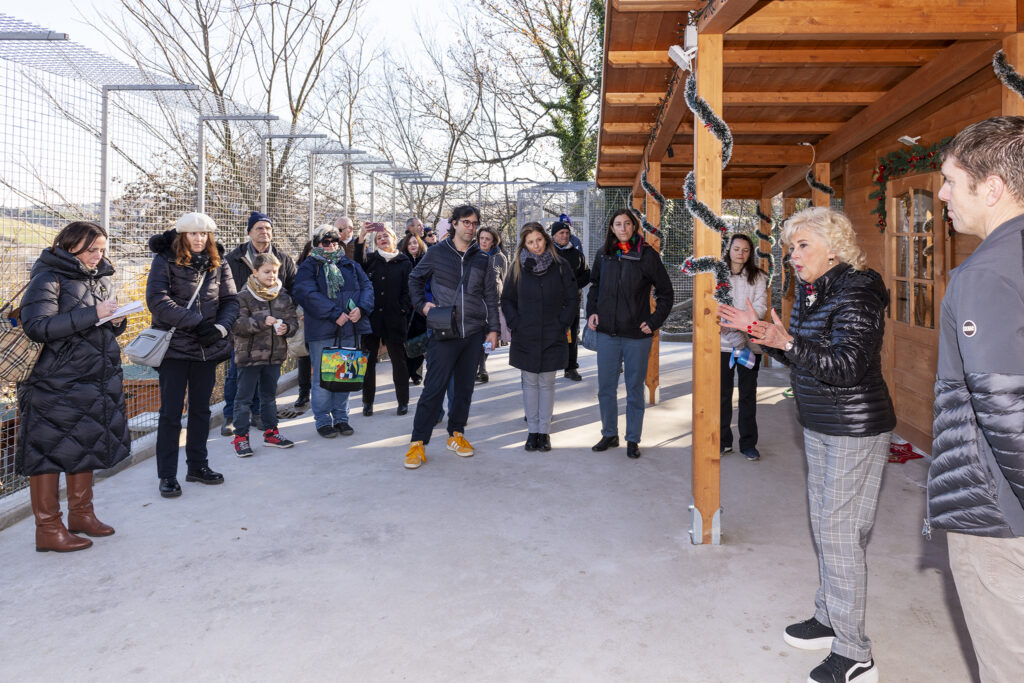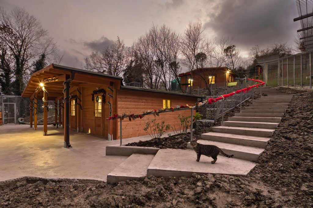 Il parco tutto recintato, ha una superfice di oltre 1.200 mq, su cui sono collocate tre baite per un totale di 70 mq al coperto. All’interno delle baite, tre i locali riservati al ricovero e cinque quelli destinati alla degenza dei gatti in cura.